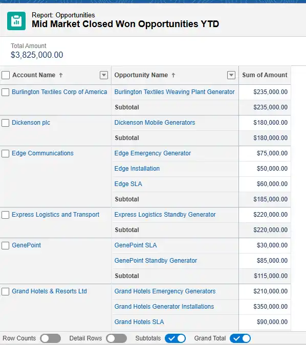 Here’s a quick win: cut redundant columns. If the report is already filtered to “Closed Won,” you don’t need a “Stage” column. When scanning your report from left to right, ask yourself: