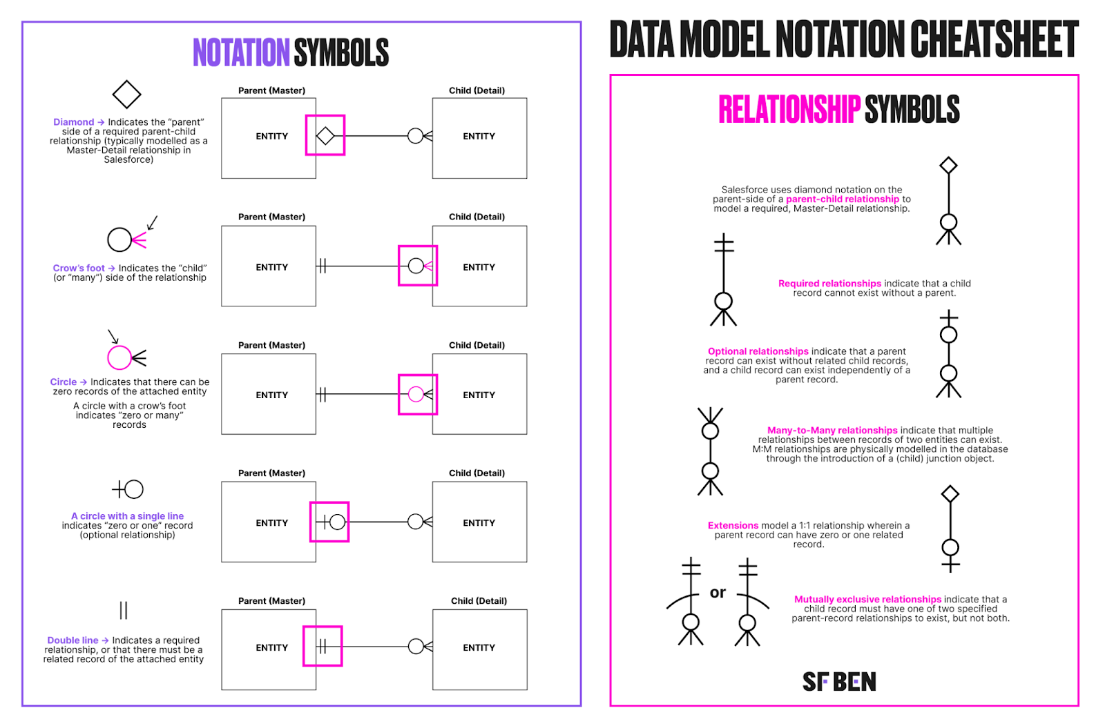 If you need a quick reminder on how to interpret Salesforce Architecture ERD notation, take a look at this infographic below!