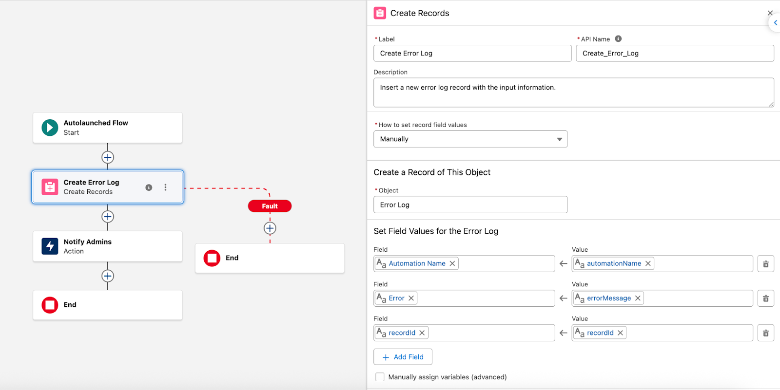 While it may be tempting to start adding individual actions and Fault Paths for every single flow, it’s a good idea to take a step back first and ask yourself: Does the automation need to do the same thing when multiple elements and flows error out?
