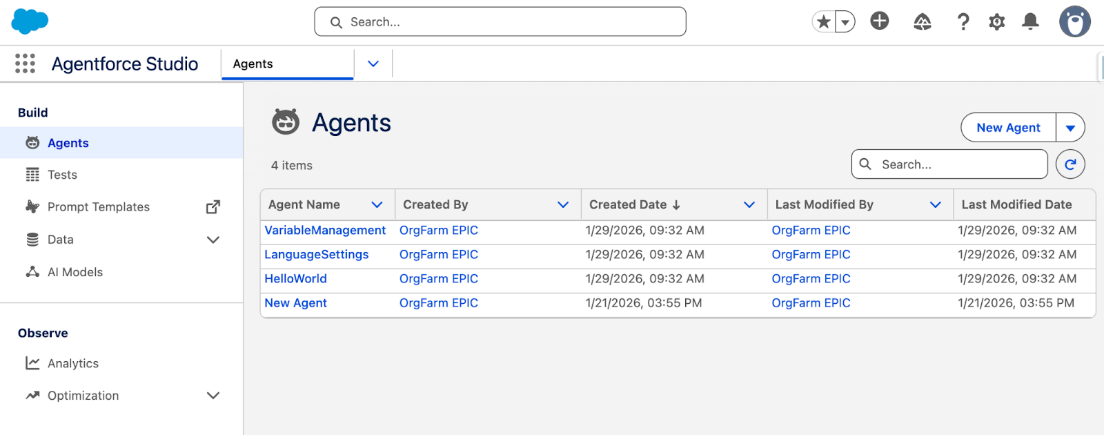 - Ensure you have access to Agentforce Studio (from the App Launcher).