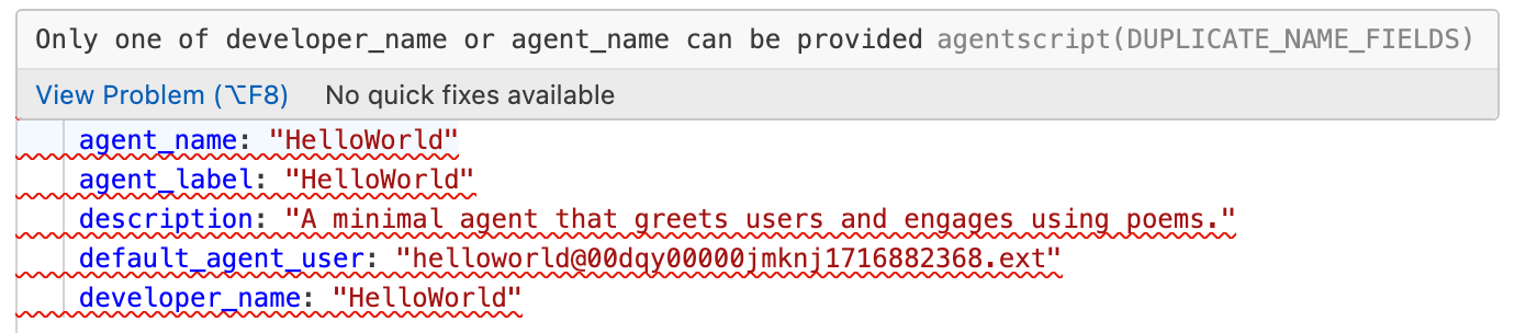 Removing developer_name solved the issue, and the squiggly lines disappeared.