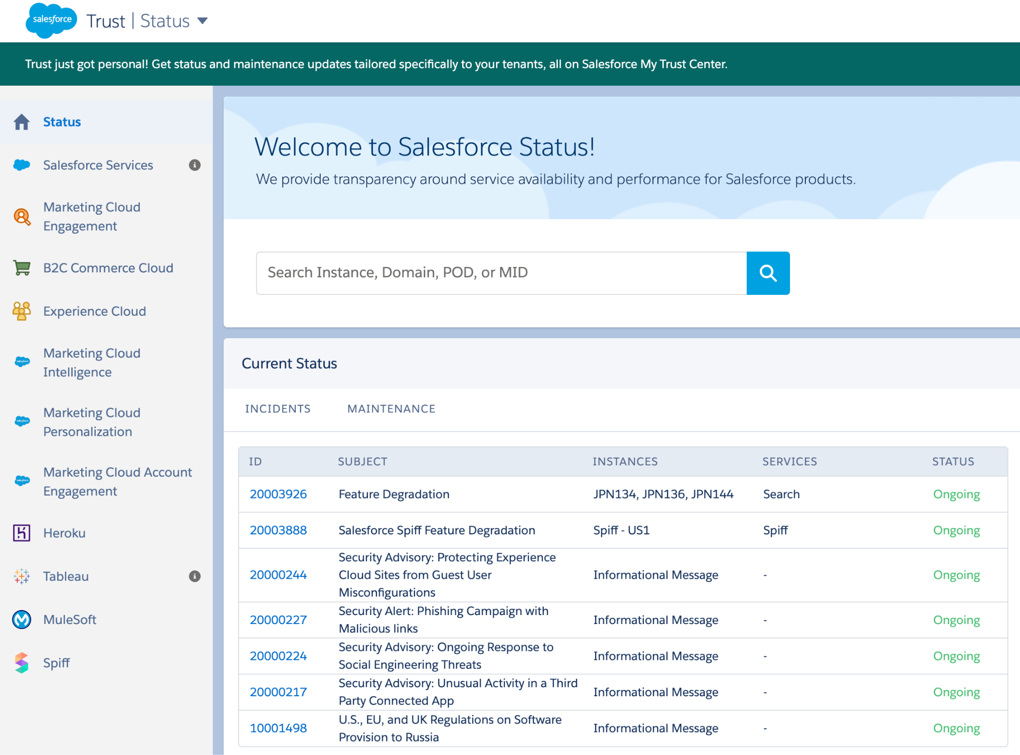 As you’d know, an incident might affect just a subset of services or even only certain configurations, so it’s the kind of knowledge that can leave you trying to figure out where you fit in. When you’re subscribed to notifications, email blasts are instance-wide, so they aren’t exactly tailored to your specific org.
