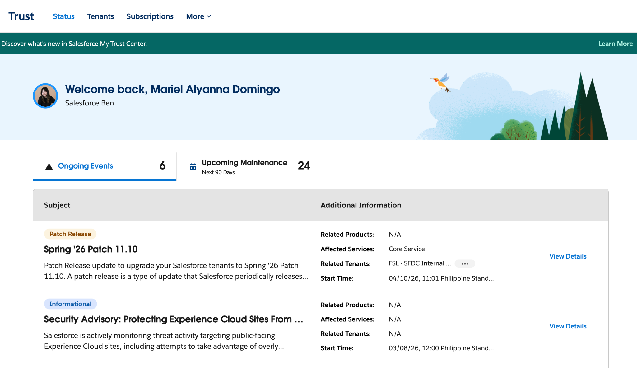 On the traditional Trust site, alerts were tied to instances. You’d subscribe to updates for a specific instance and receive email notifications whenever something changed. While useful, this often meant getting alerts that weren’t always relevant to your org, or having to double-check whether they actually applied.