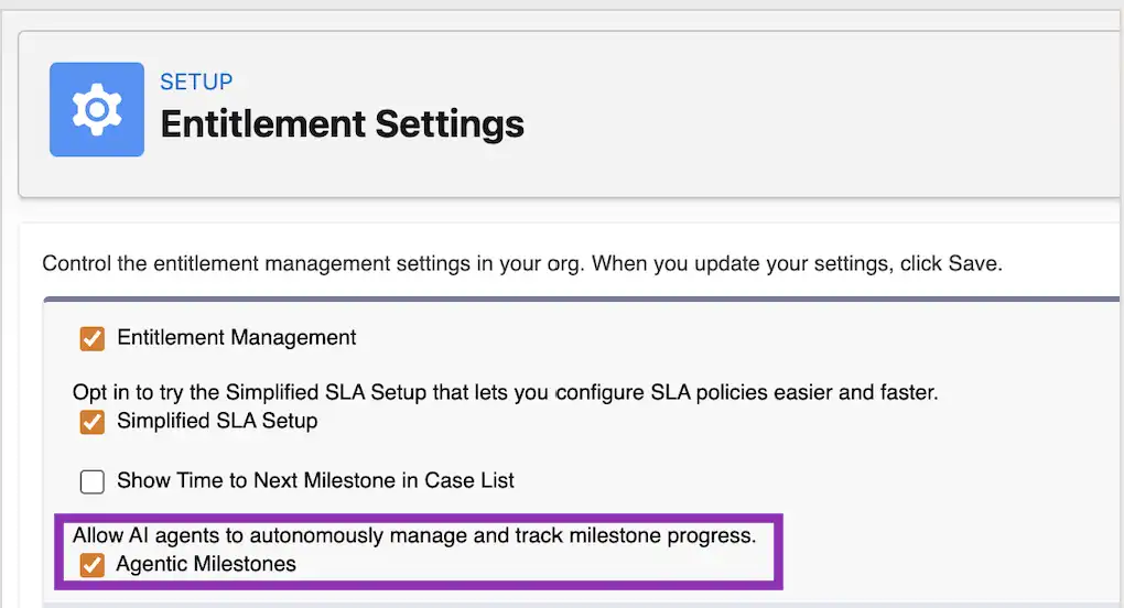 Once enabled, you can mark specific milestones within an SLA policy as agentic, and use Prompt Builder to define how those communications should be written. From there, Agentforce takes care of the rest.