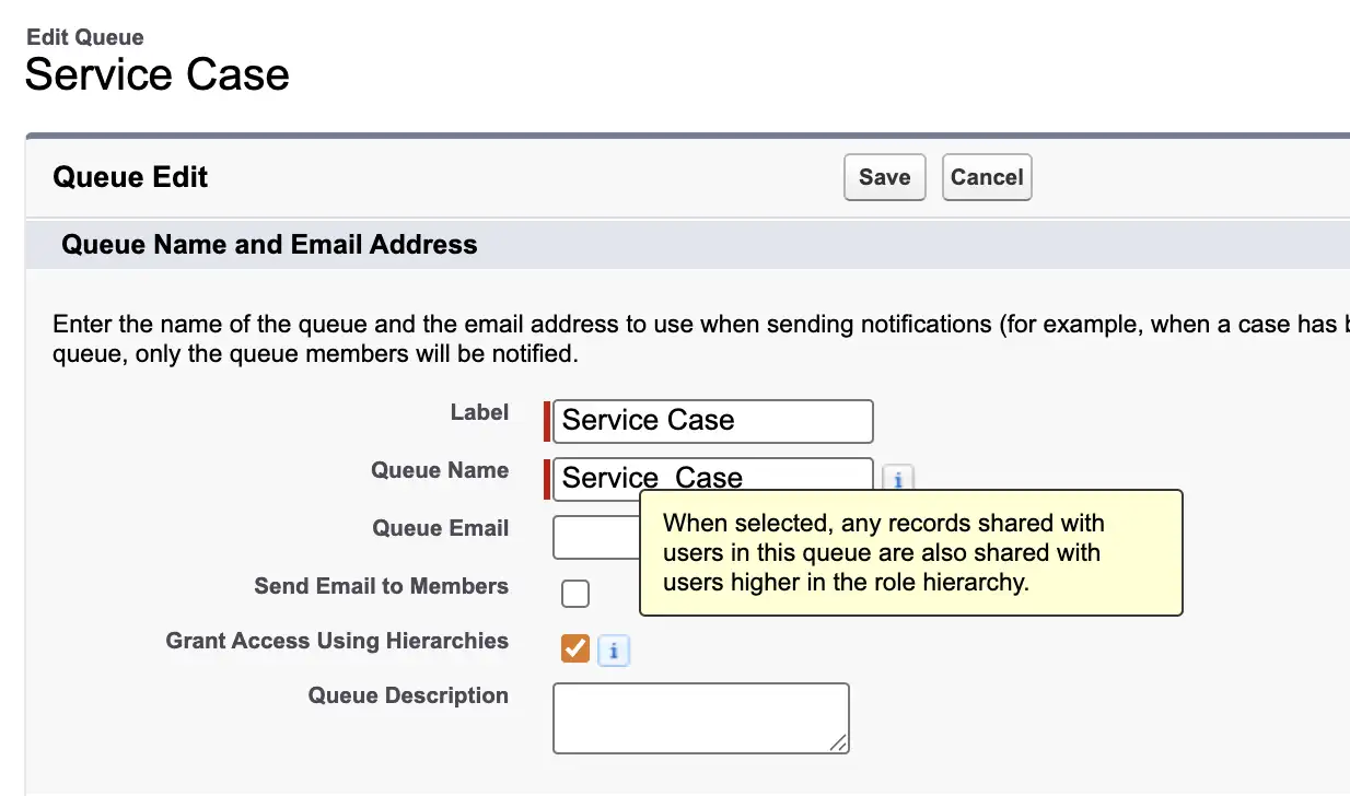 With the new Grant Access Using Hierarchies setting on queues, you can decide exactly how far that access should go. This gives admins more flexibility when managing record visibility, especially in larger orgs with layered team structures.