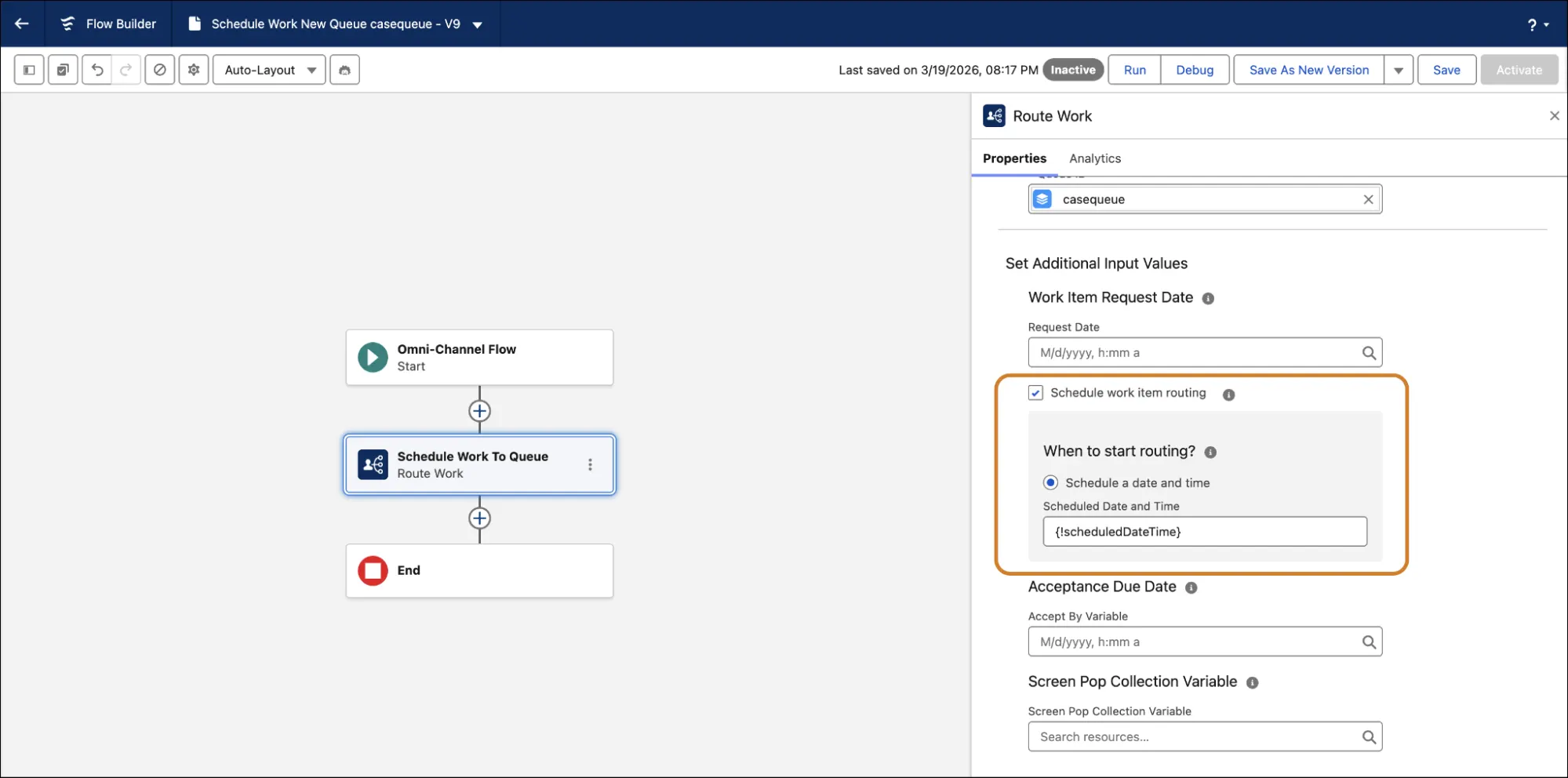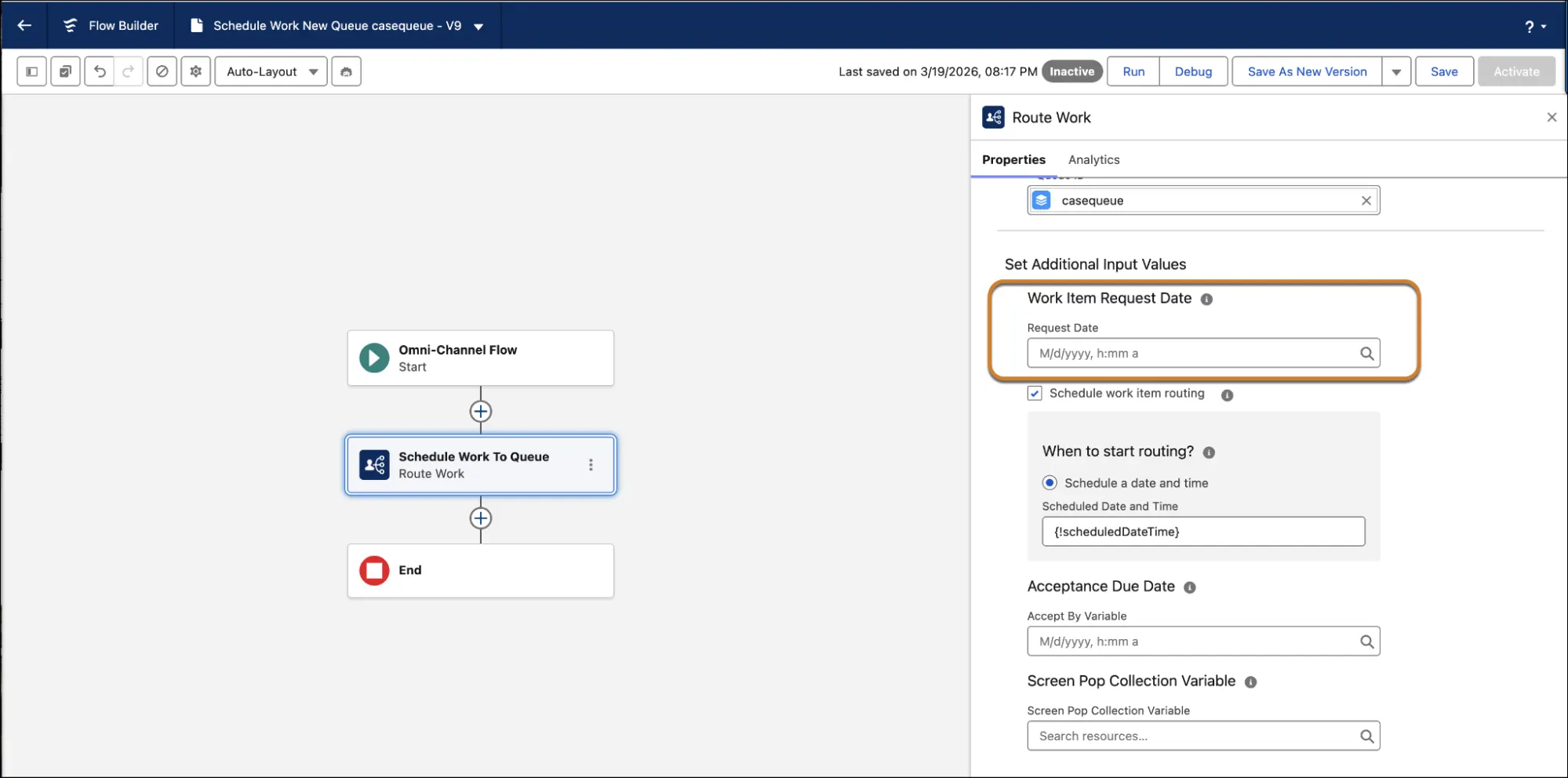 Second, you can now schedule work items to be routed at a specific date and time in the future, instead of adding them to the backlog immediately.