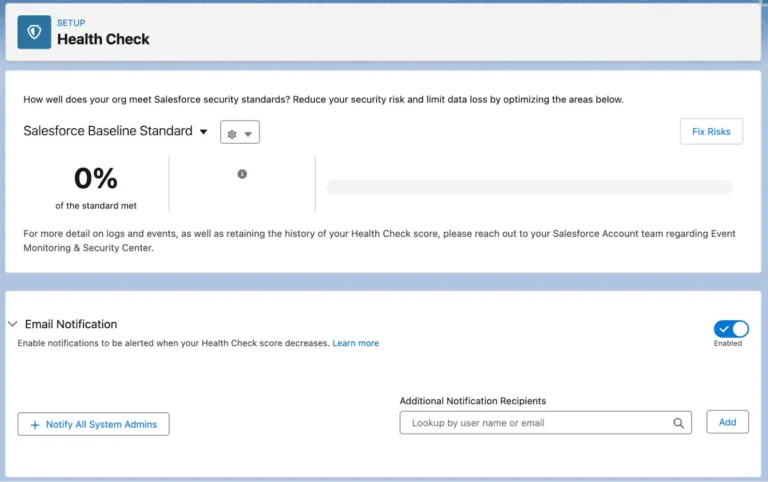 That’s where the Spring ’26 updates to Salesforce Health Check come in. Alongside improvements like MFA status tracking, SAML enablement, and session management controls, there’s a new feature that makes it easier to stay on top of your org’s security posture: automated email notifications when Health Check detects a change.