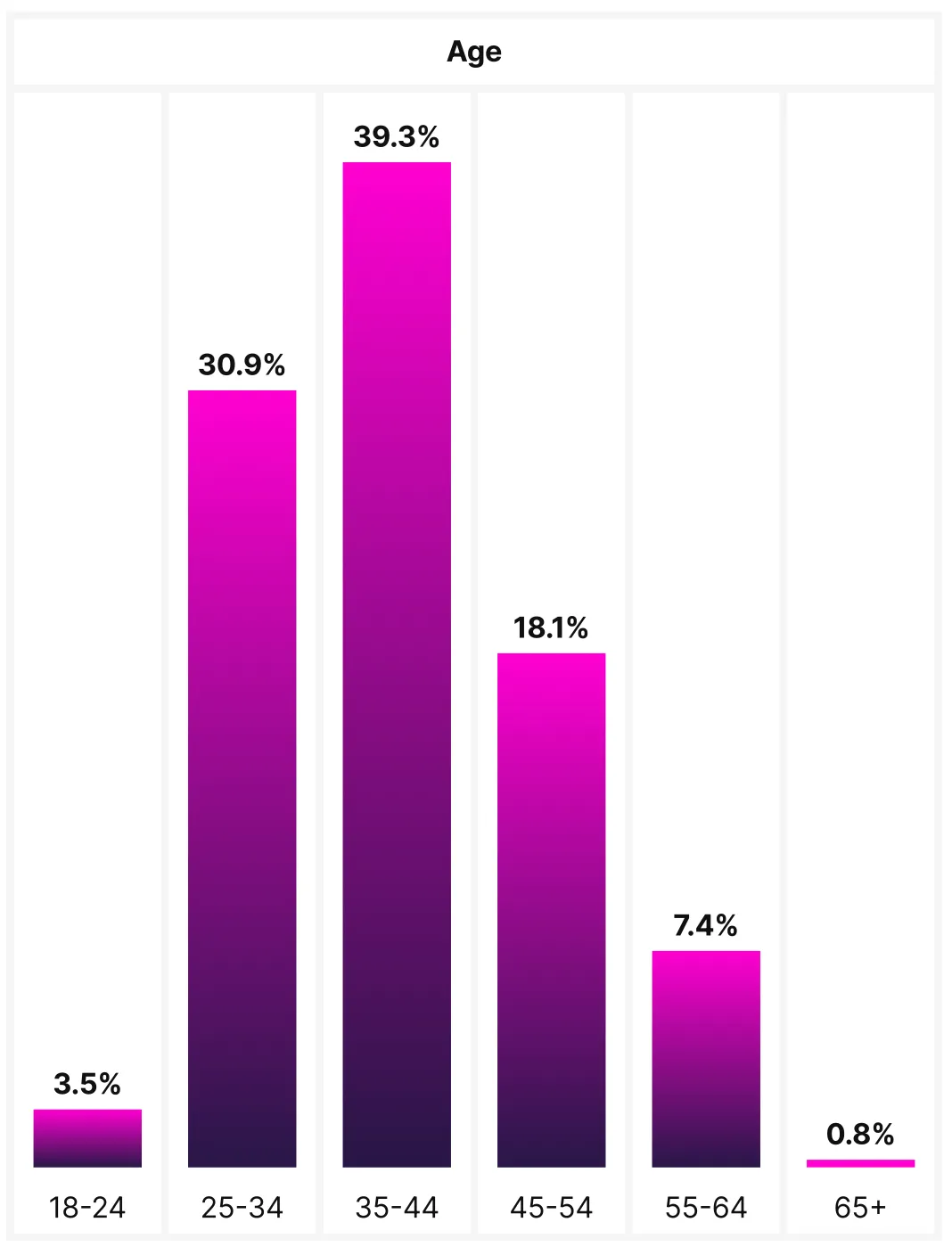The number of respondents in the ecosystem that fell into the 18-24 bracket in 2024 totalled to 3.9%. In 2025, that percentage fell to 3.5%.