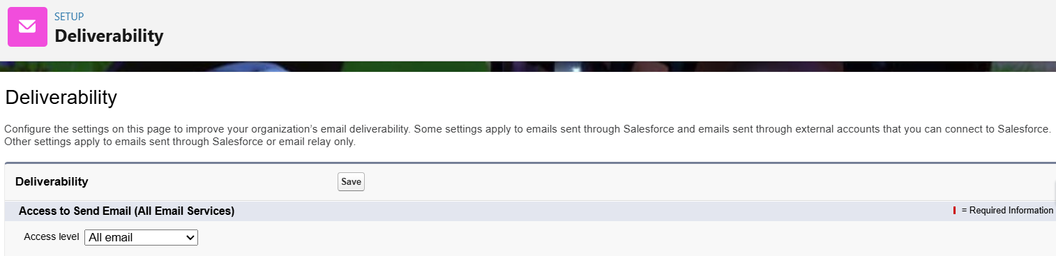 Ensure your org’s Email Deliverability setting is configured to “All Email”. This means that your organization is configured to send all types of emails, including those triggered by automation or user actions, without restrictions. This can be done from Setup → Email → Deliverability.