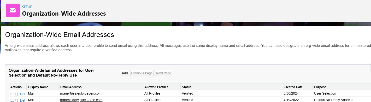 If you’re planning to use a consistent sender address, set up and verify an Org-Wide Email Address.