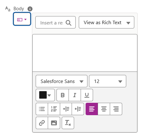 The WYSIWYG composer has a variety of basic formatting options as well, such as font color, text alignment, bullets, numbering, hyperlinks, and more.