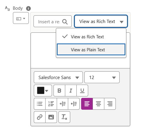 Salesforce allows you to use plain text or rich text when constructing emails in Flow. Rich text provides more flexibility with styling and branding, but be sure to test the rendering across different email clients.