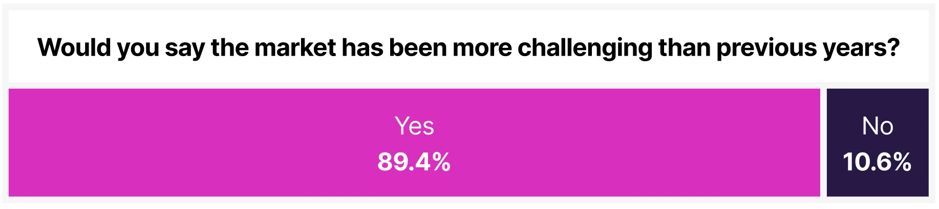 A significant 89.4% of respondents said the market was more challenging than in previous years, while 55.2% reported seeing fewer opportunities within their role.